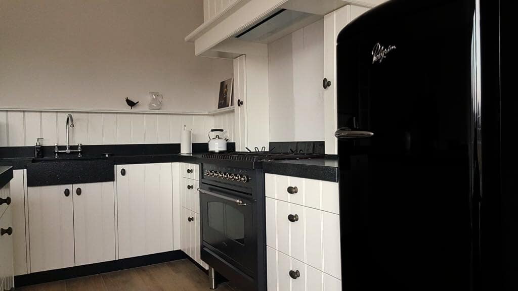 Deze boeren- en landelijk geïnspireerde keuken straalt warmte, rust en ambacht uit. De combinatie van natuurlijke materialen en traditionele vormen zorgt voor een authentieke uitstraling die perfect past in een landelijke woonstijl.