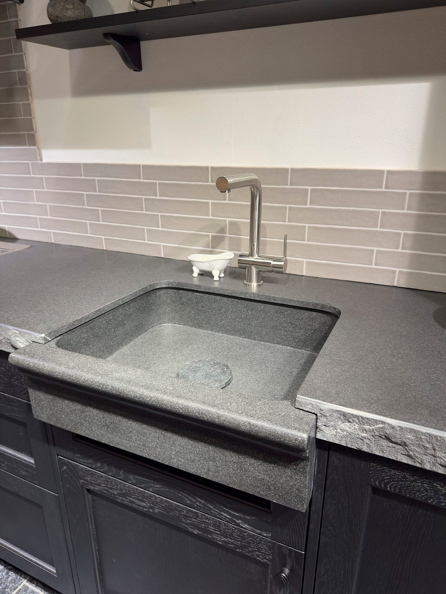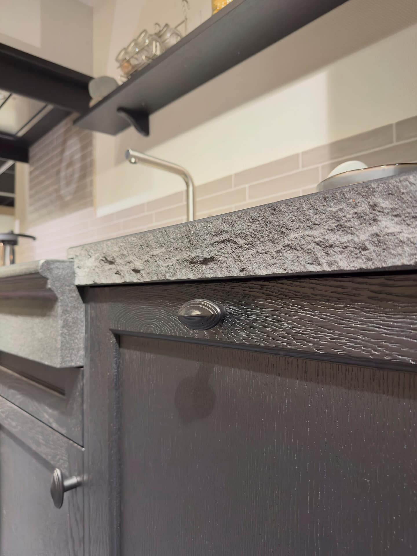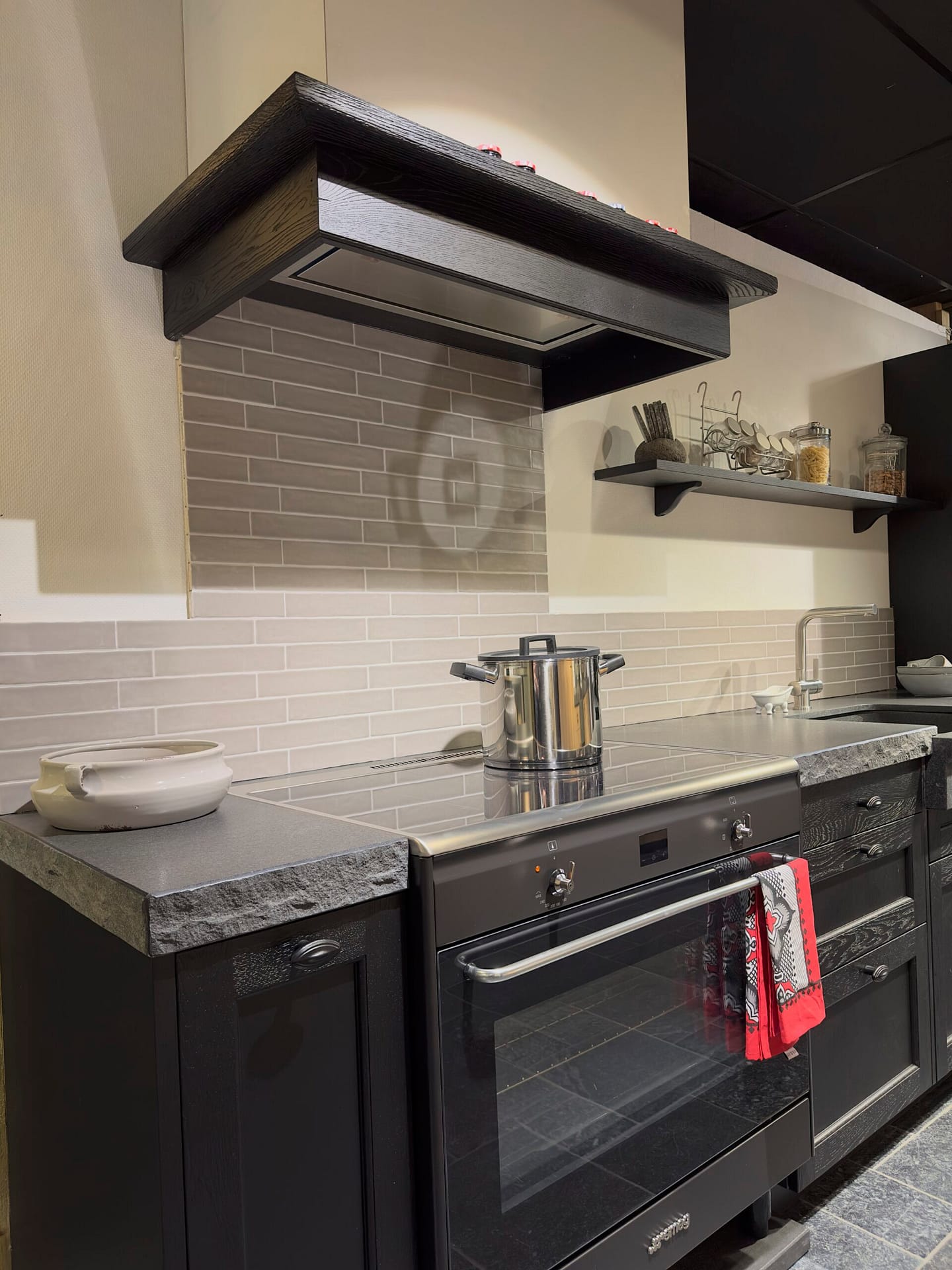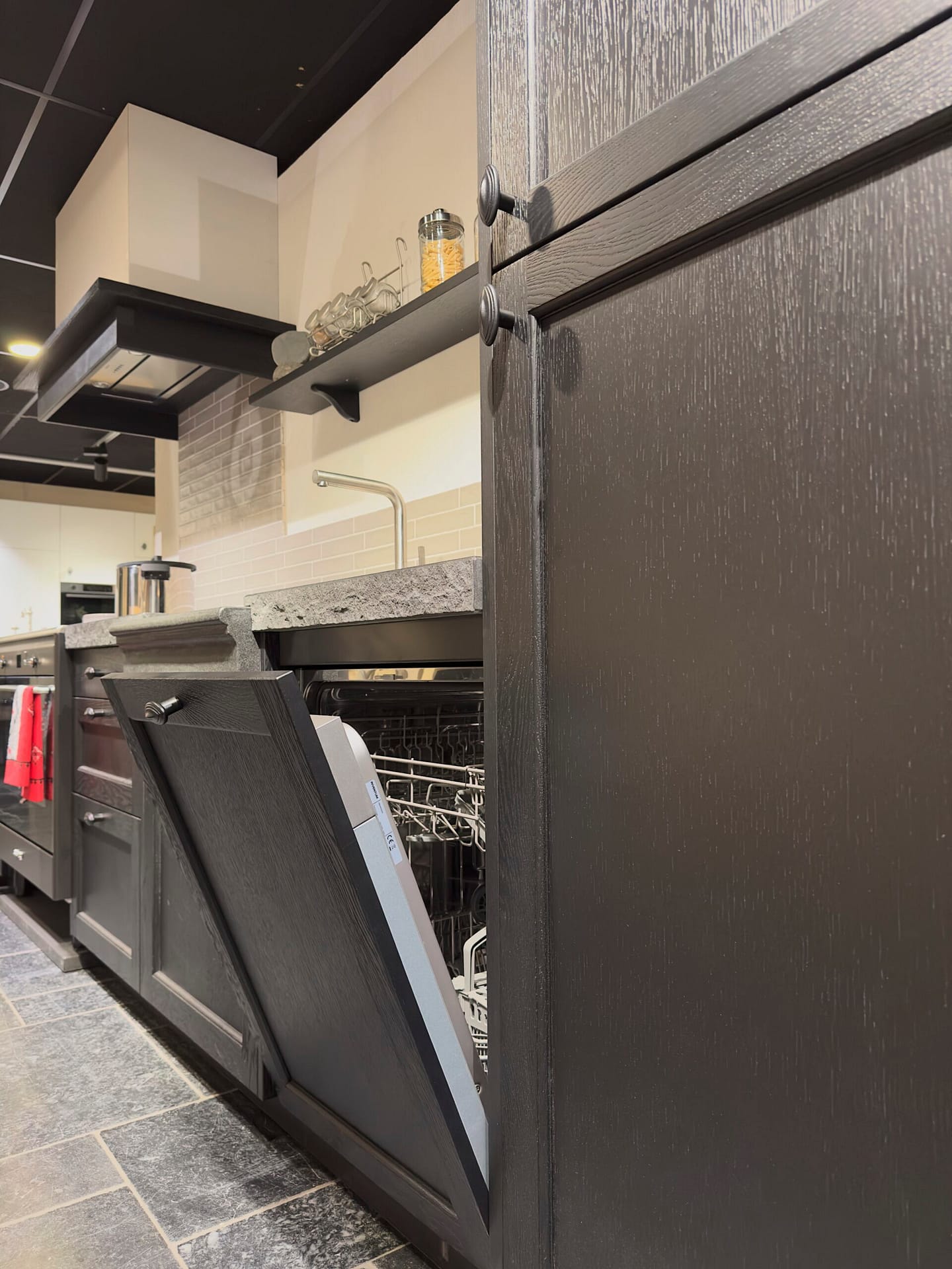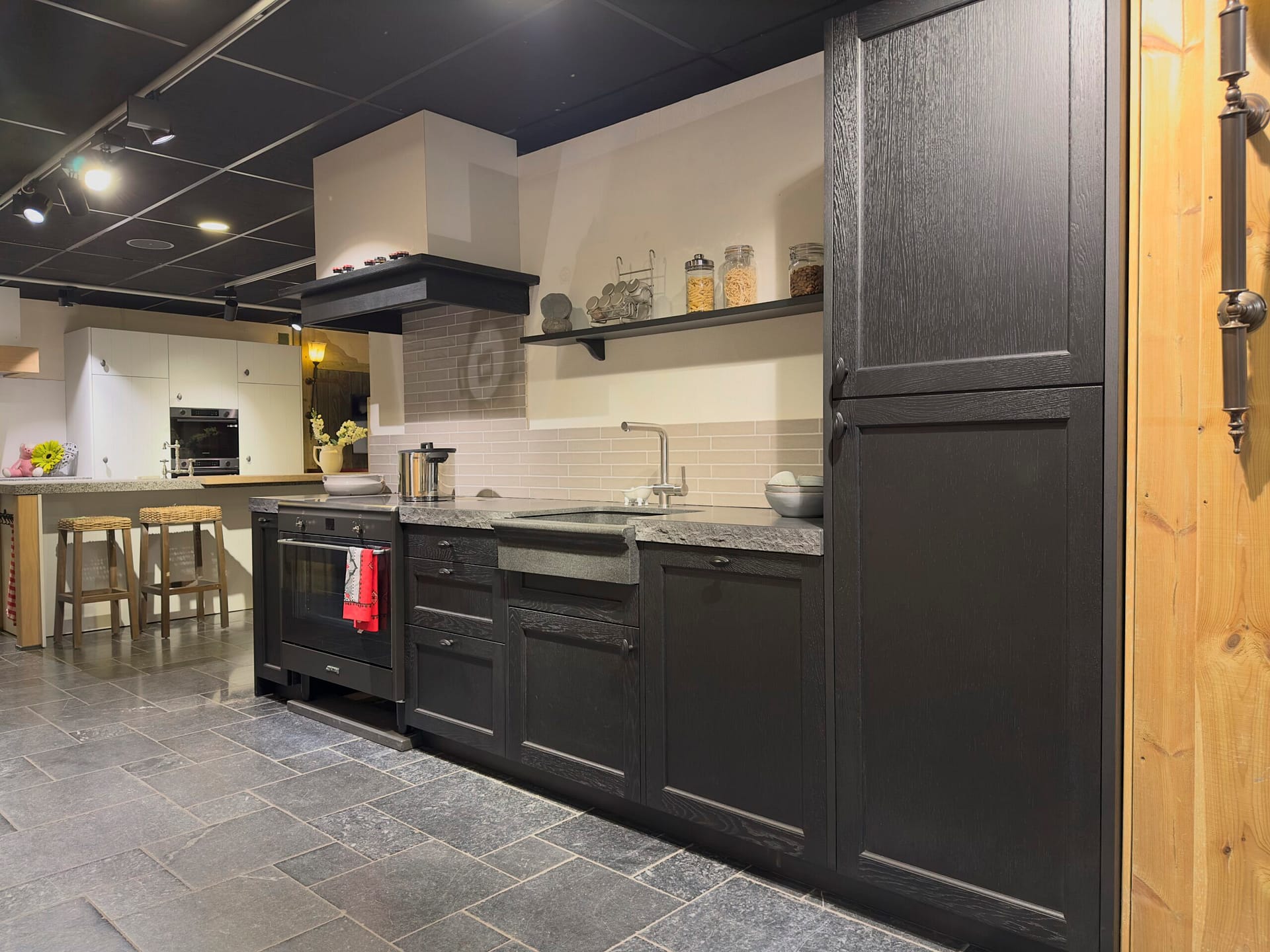 Deze landelijke keuken met stoere uitstraling is een toonbeeld van karakter en ambacht. De zwarte fronten zorgen voor een krachtig en stijlvol contrast, en geven de keuken een robuust en tijdloos karakter. Het granieten werkblad in de kleur hei zwart maakt de uitstraling compleet: solide, natuurlijk en elegant.