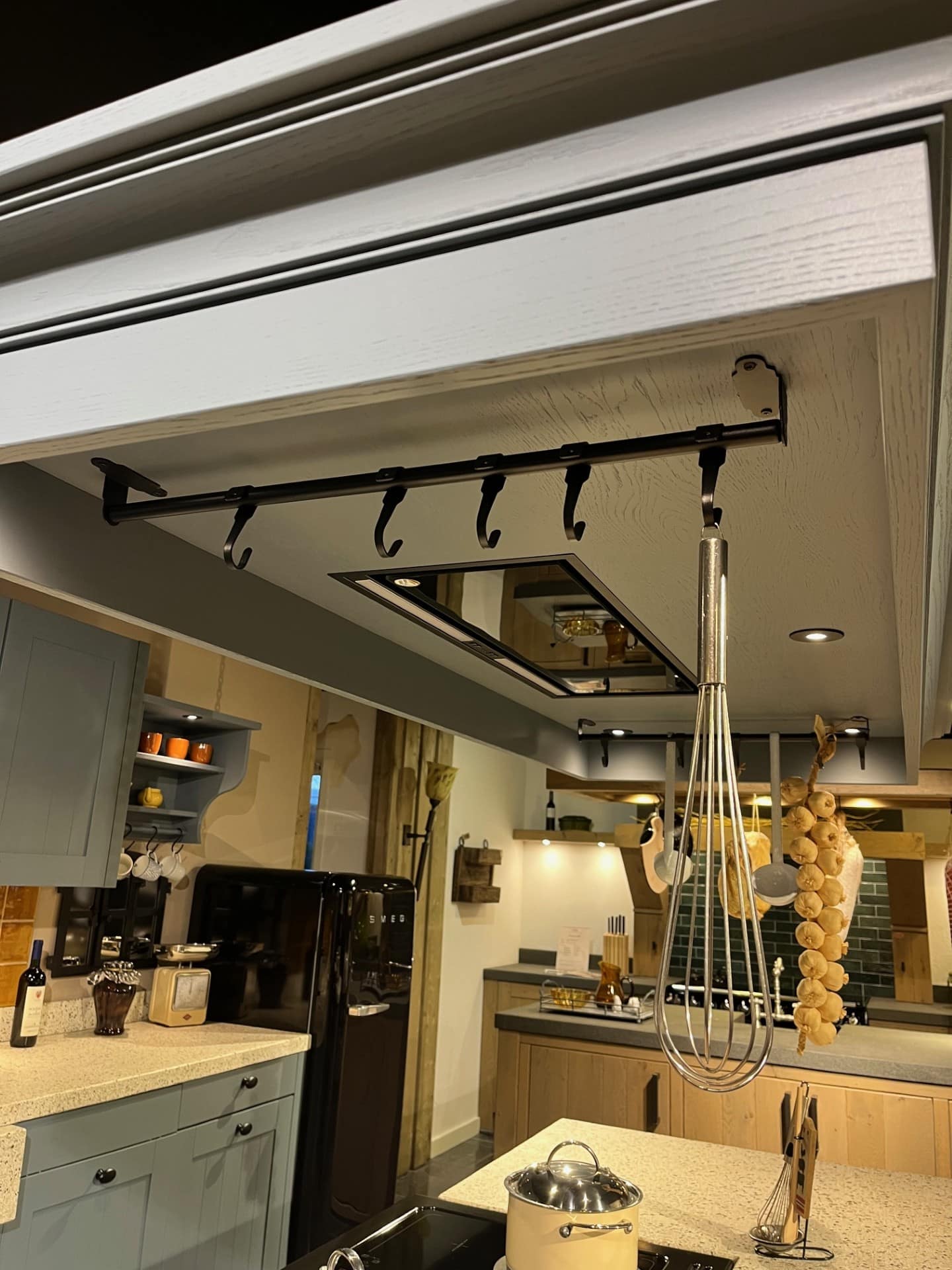 De subtiele details en robuuste vorm geven de keuken een landelijke sfeer, terwijl de geïntegreerde afzuiging en ophangmogelijkheden zorgen voor optimaal gebruiksgemak. Een ambachtelijk maatwerkstuk dat sfeer, karakter en persoonlijkheid toevoegt aan uw keuken.